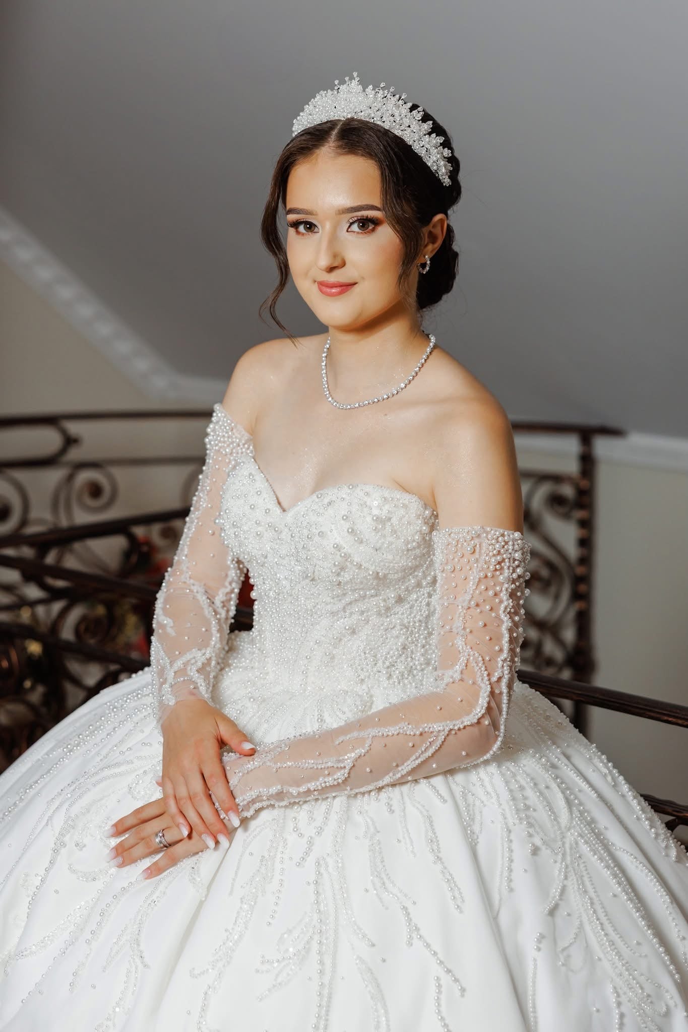Realizată cu perle împletite manual și cristale din zirconiu atent montate, coronița reflectă lumina subtil, oferind un efect spectaculos în fotografii și la lumina naturală. Designul cu textură tridimensională, creează volum fără a încărca coafura.