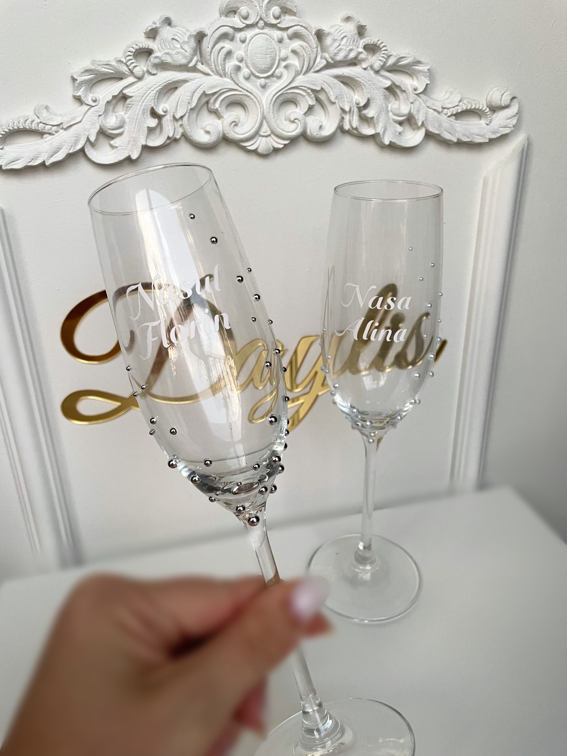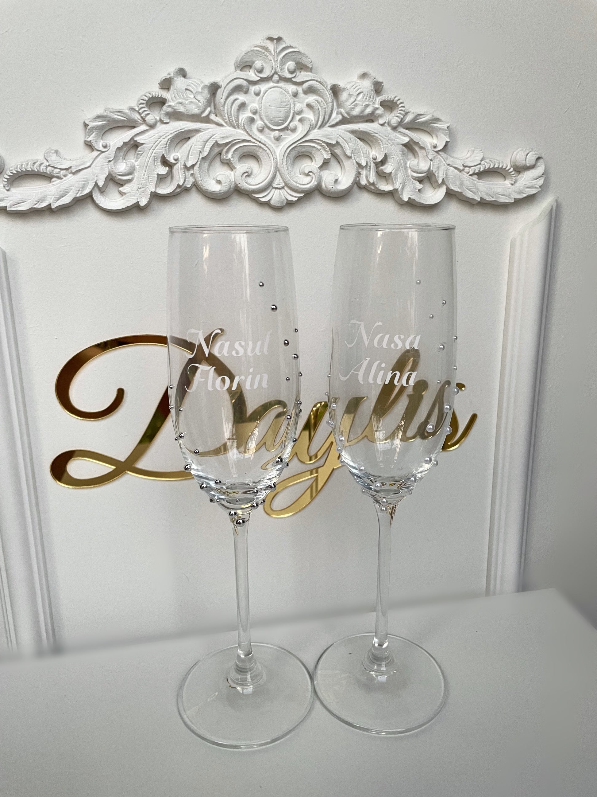 Paharele sunt personalizate cu nume sau orice alt detaliu important pentru voi.