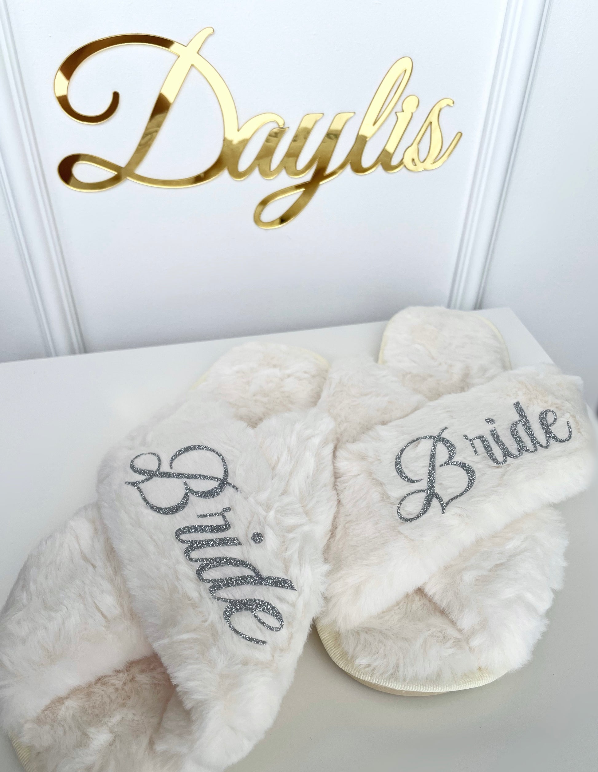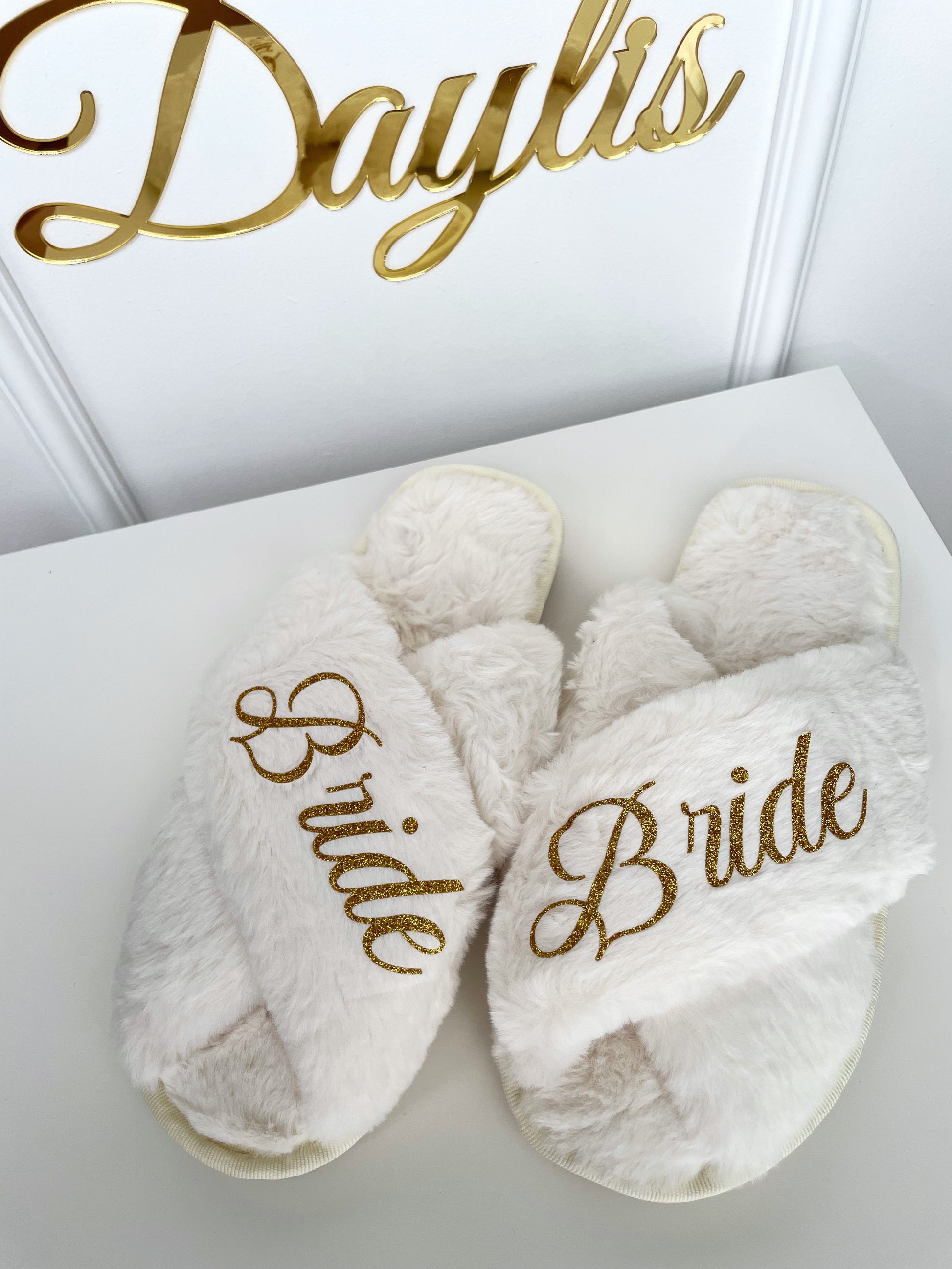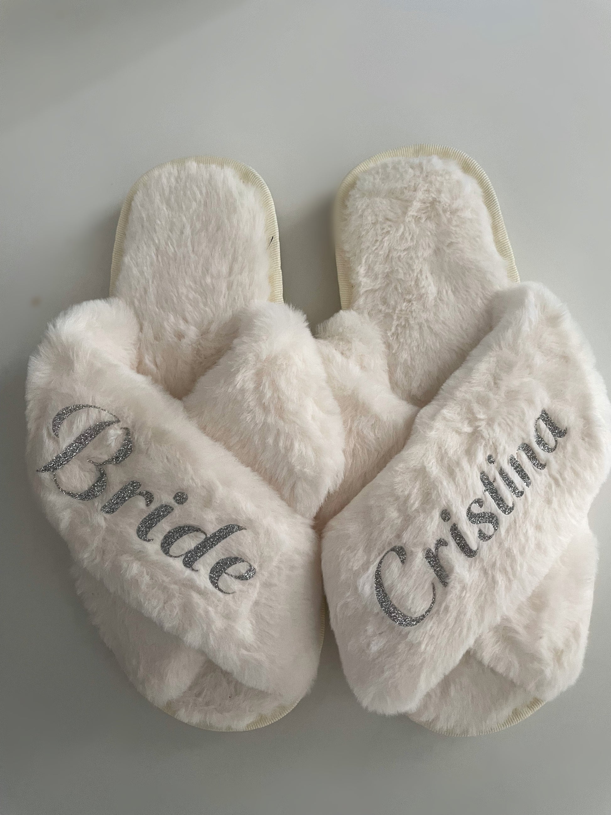 Papuci mireasa dubli, personalizati cu textul "Bride".